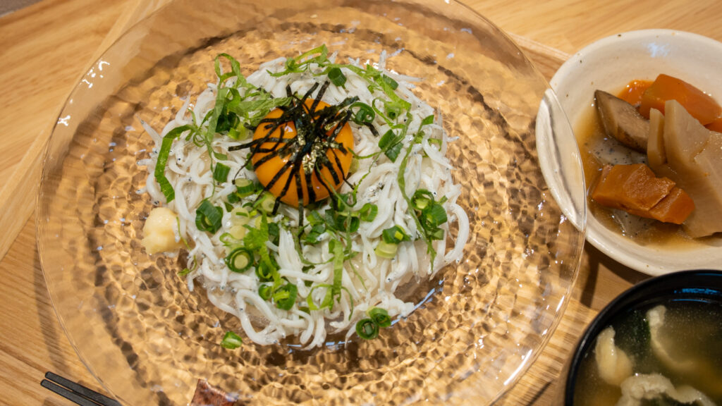 昼間は鎌倉野菜をふんだんに煮込んだ甘口カレー、湘南の海を味わう釜揚げしらす丼等、地産の食材が味わえる定食メニューを提供