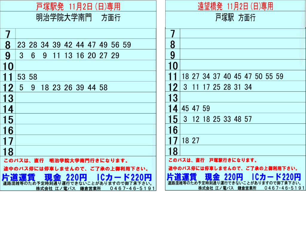 総合トップバス【11/2】明治学院大学線 臨時バスの運行について