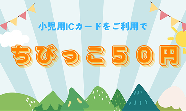 春休みやGWなどの特定期間中、小学生の方に限りバス運賃を全線50円!
