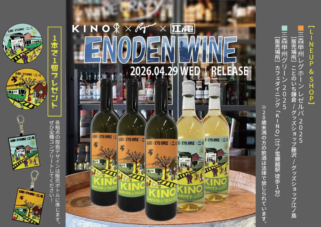 江ノ電グッズショップでは、「KINO 三森甲州レグホーンレゼルバ2025」を好評発売中です。